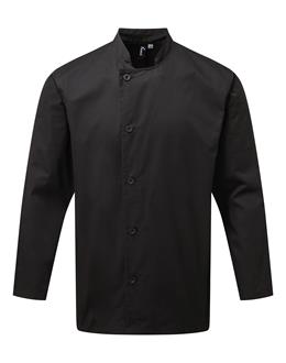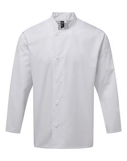 A durable long sleeve chef’s jacket that fastens down the right hand side of the body with five long life resin buttons. On the upper left sleeve there is a handy double pocket pen compartment. This jacket is styled with a mandarin collar and is available in Black and White and offers great value for money.